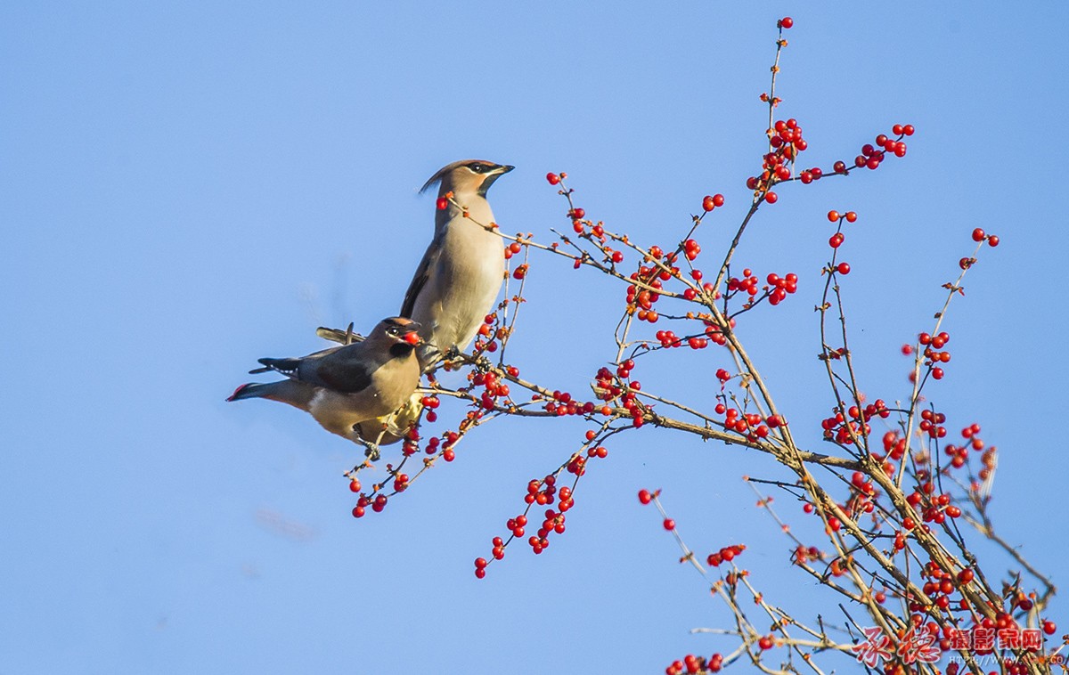 一对太平鸟
