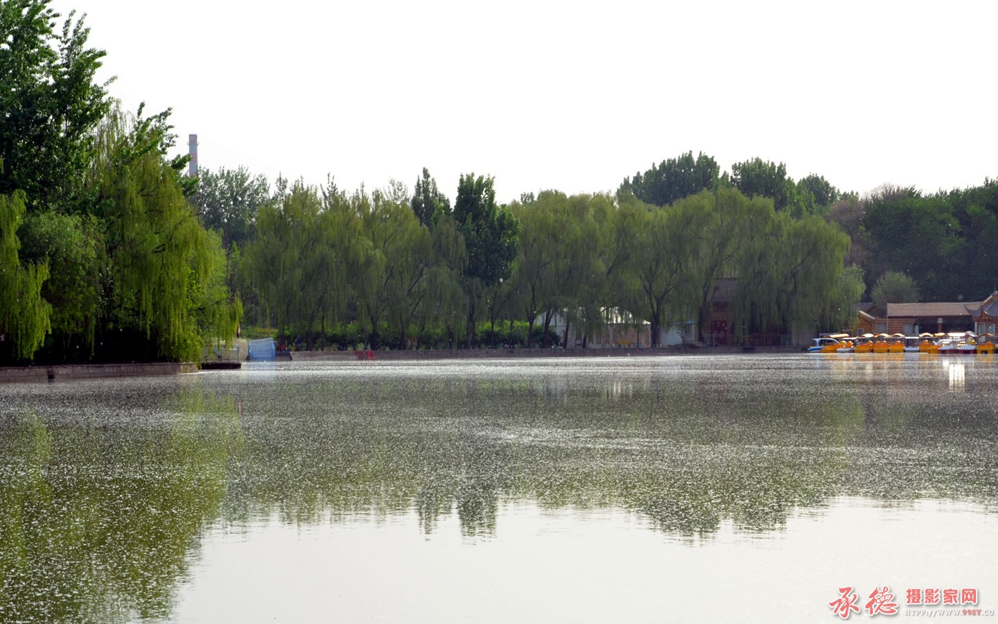 柳絮飘落湖水美