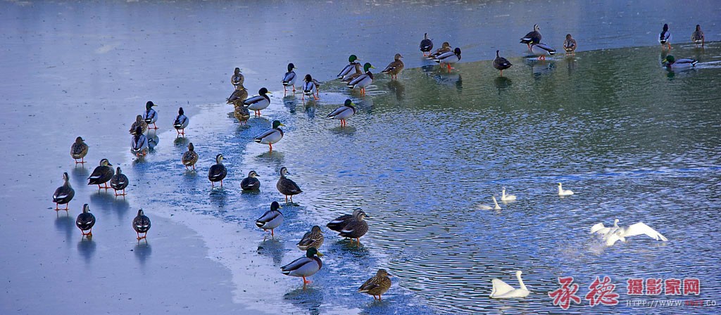一组绿头鸭近照