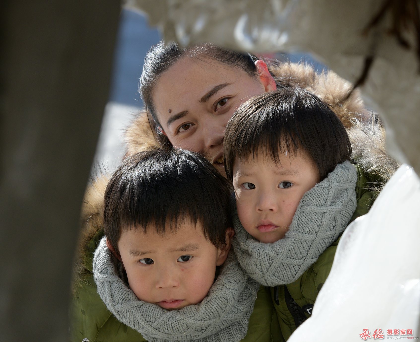 神态自然,抓拍精彩,母女三人眼神一致,欣赏学习。