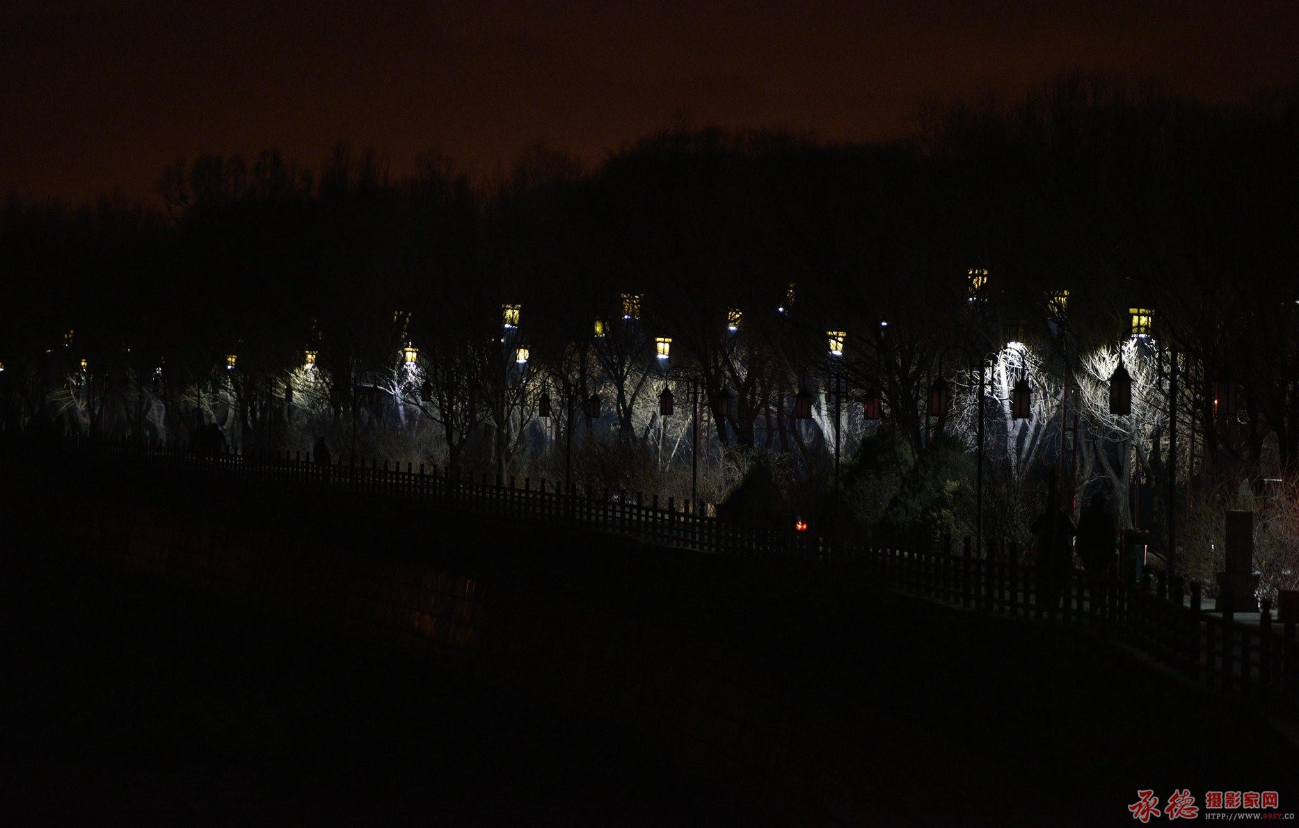 忽隐忽现的路灯,坝栏,神秘感...