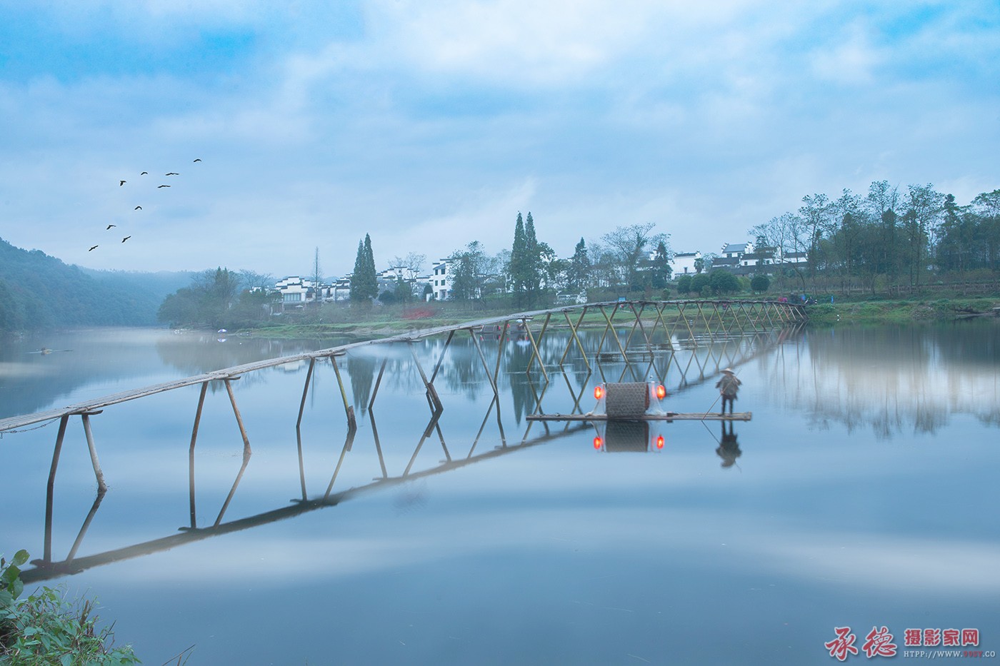 婺源漳村<木板人字桥>清晨