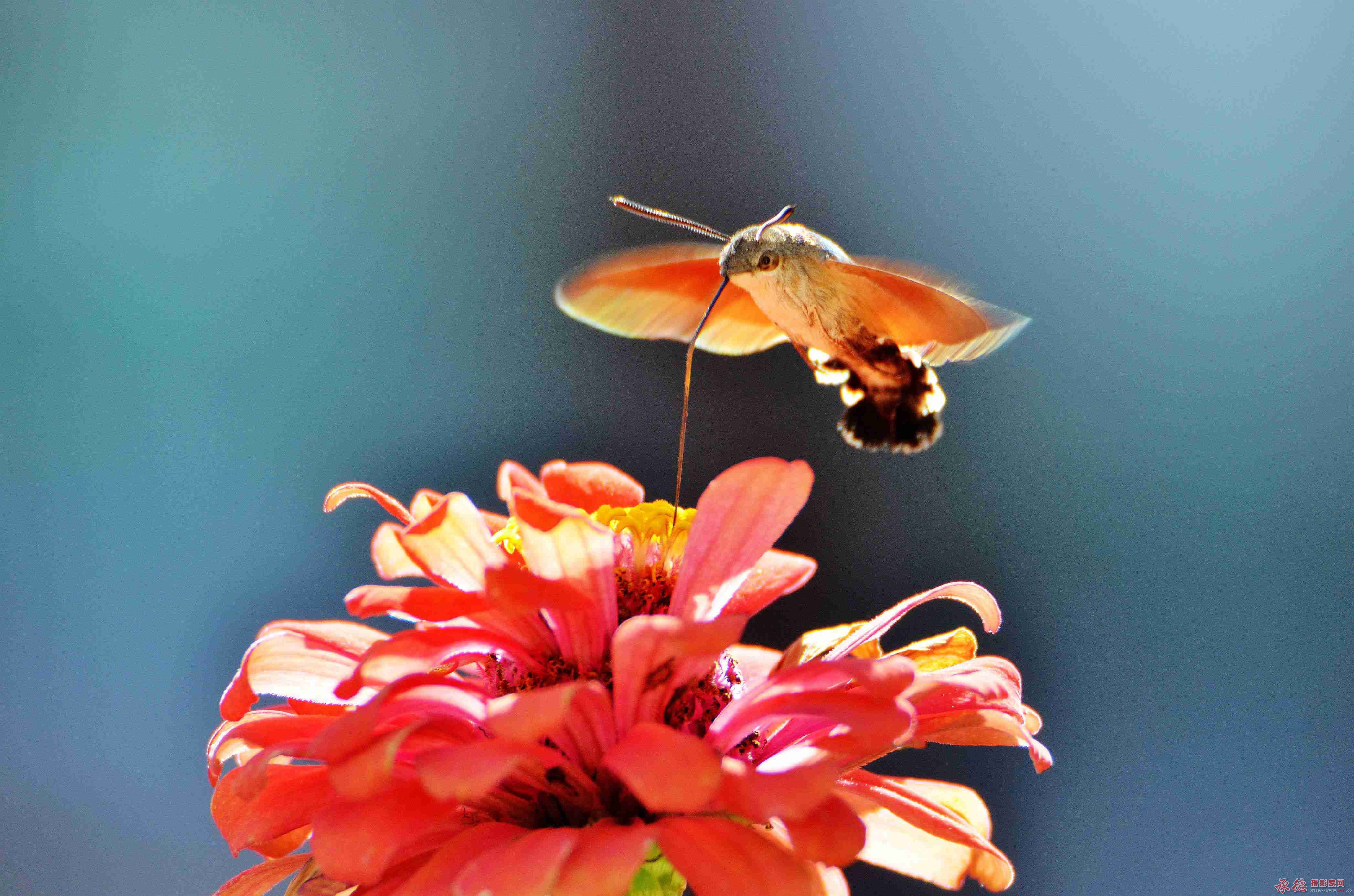 快乐摄影 发表于 2017-9-8 14:20 背景干净.花漂亮.蜂蛾动感强.