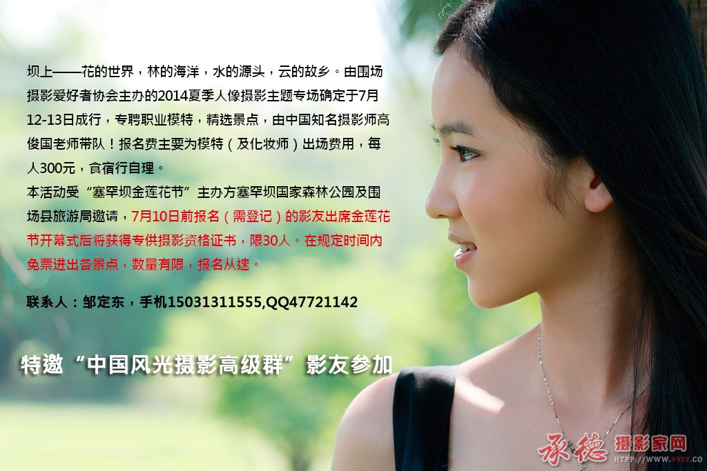 本帖最后由 热河土人 于 2014-7-8 18:13 编辑 影友的喜讯 坝上人像模特拍摄活动 此活动由“坝上老高”老师带队