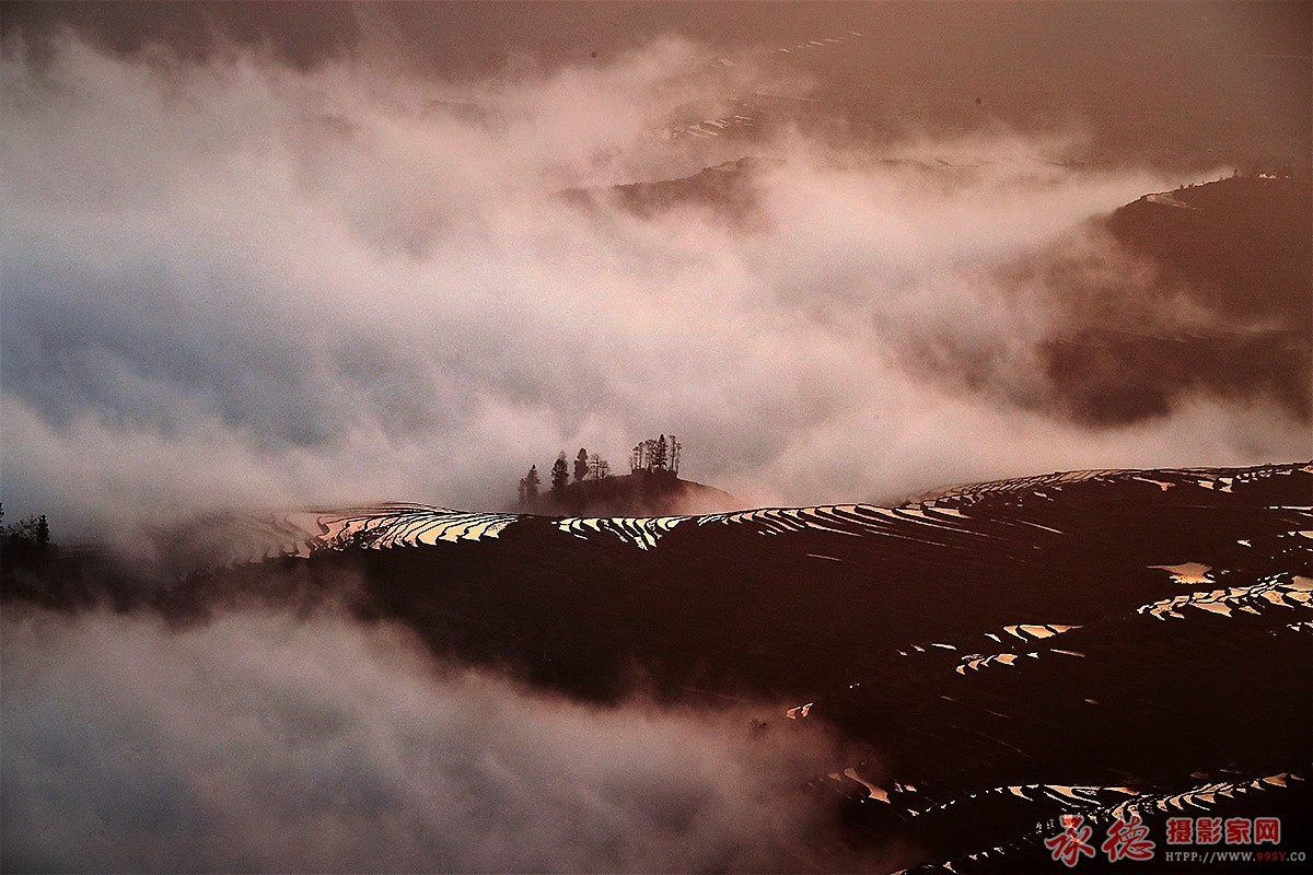 主题突出,构图美,云雾缭绕中的梯田美如画,佳作!