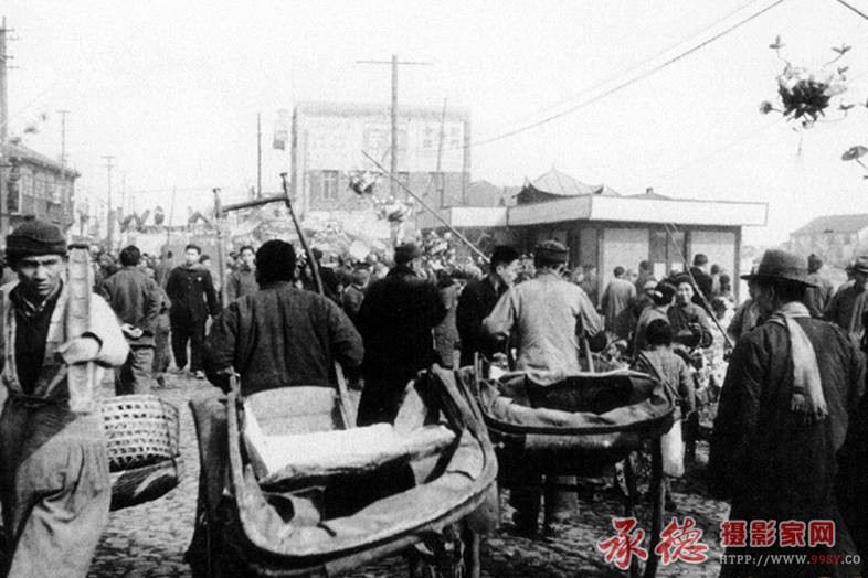 50年代逛庙会的人们,那时的庙会还不繁华,吃喝玩乐还比较少。
