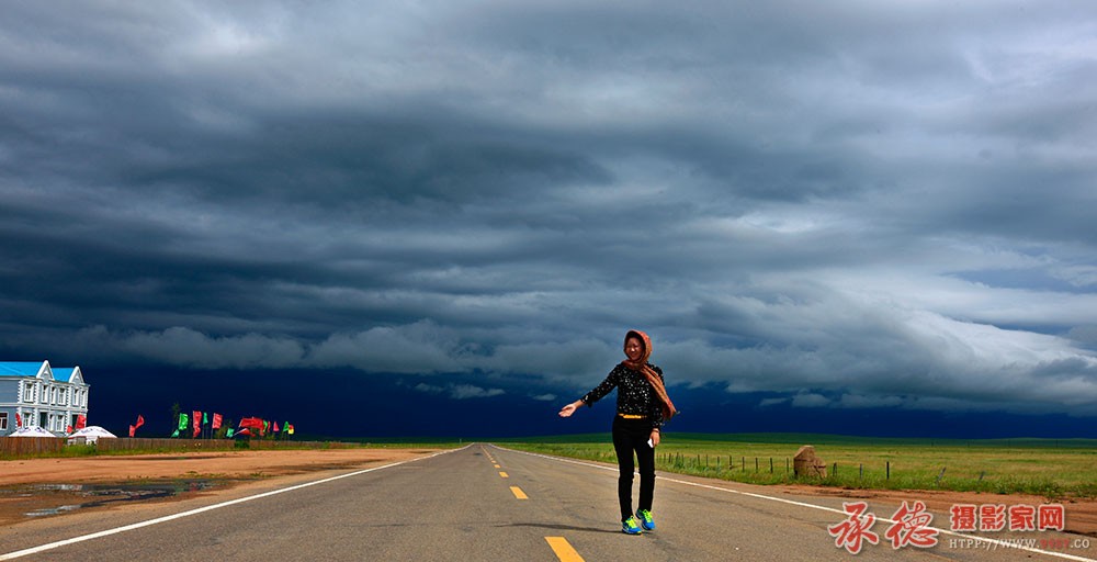 乌云笼罩的草原,更显得广阔、深邃,风雨欲来凸显了行人的匆匆脚步!好片。欣赏