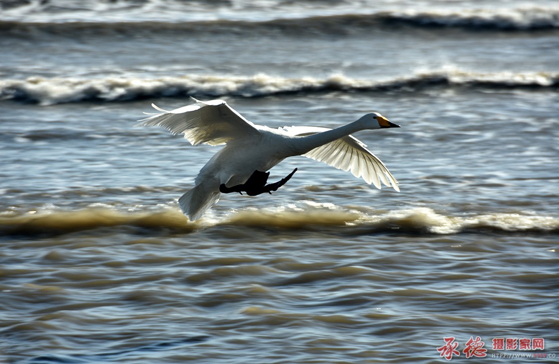 排排浪花和天鹅飞行姿态形成了不同方向的互动呼应,姿态抓拍的好,水流好,点赞,提高些亮度和锐度更好, ...