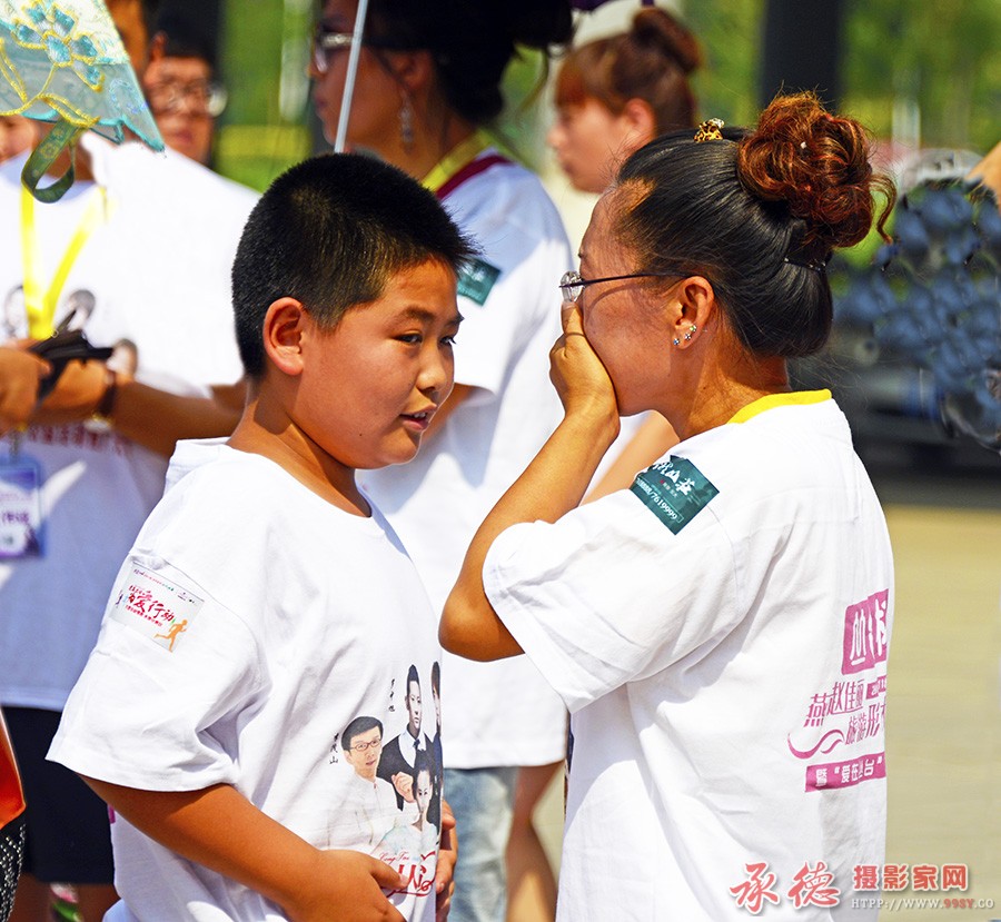 “爱在丛台”公益活动中,一位母亲看到孩子得到了资助感动地哭了。
