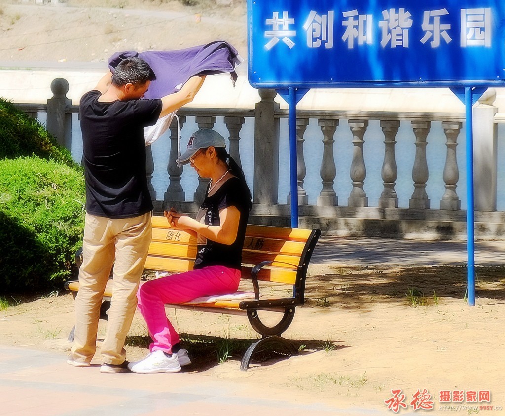挚爱融融,背景宣传牌内容与主体相得益彰。好拍摄!