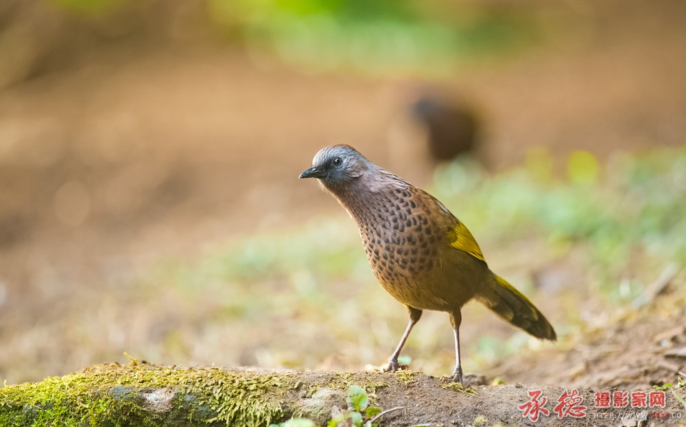 雀形目 > 莺科 > 噪鹛属 中等体型(26厘米)的噪鹛。全身大致灰褐色,上背及胸羽具深色及偏白色羽缘而成鳞状斑纹。脸色较深。臀及下腹部黄褐。虹膜-浅乳白色;嘴-褐色;脚-褐色 ...