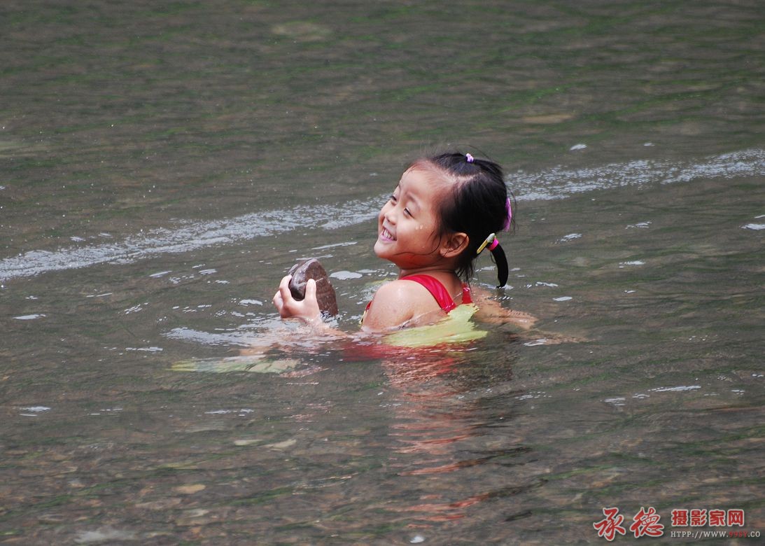 小朋友玩得很开心,正在汛期,千万要注意安全。