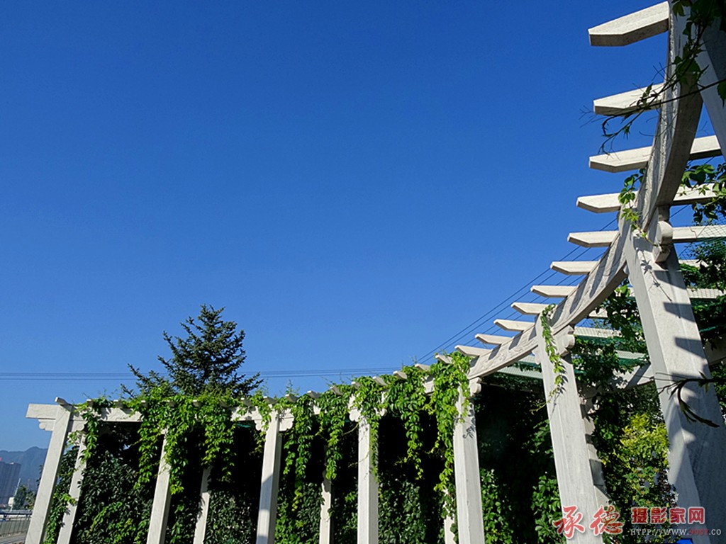 蓝天 白廊 绿藤