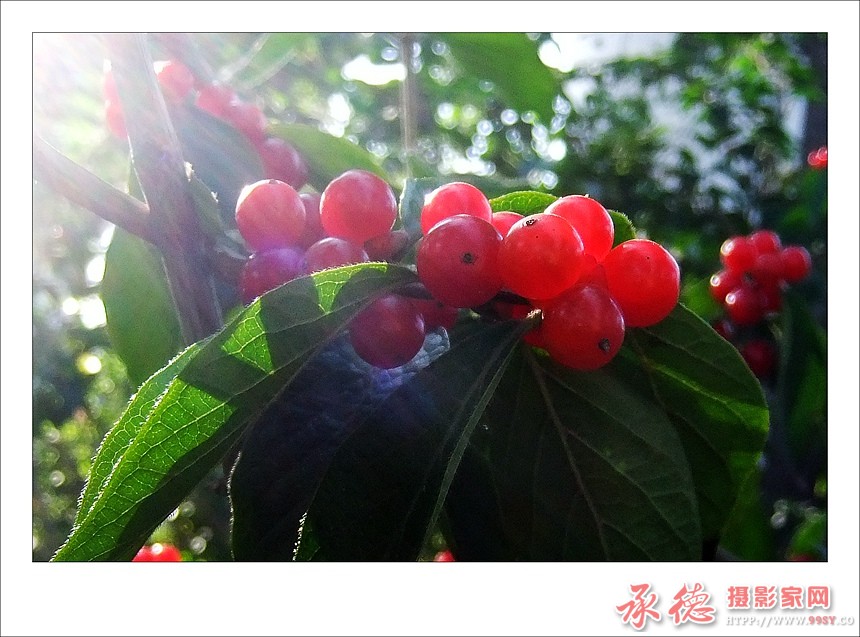 叶脉清晰,果实通透,欣赏。