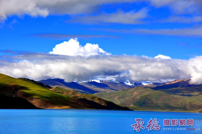 蓝宝石湖 -- 西藏 羊卓雍错 羊卓雍错风景秀丽,站在海拔4790米的岗巴拉山顶向南眺望,像一块镶嵌在群峰之中的蓝宝石,碧蓝的湖水平滑如镜,白云、雪峰清晰地倒映其上,湖光山色,相映成趣 ...