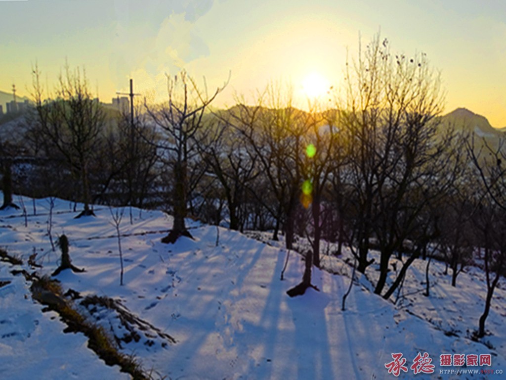 夕阳映雪