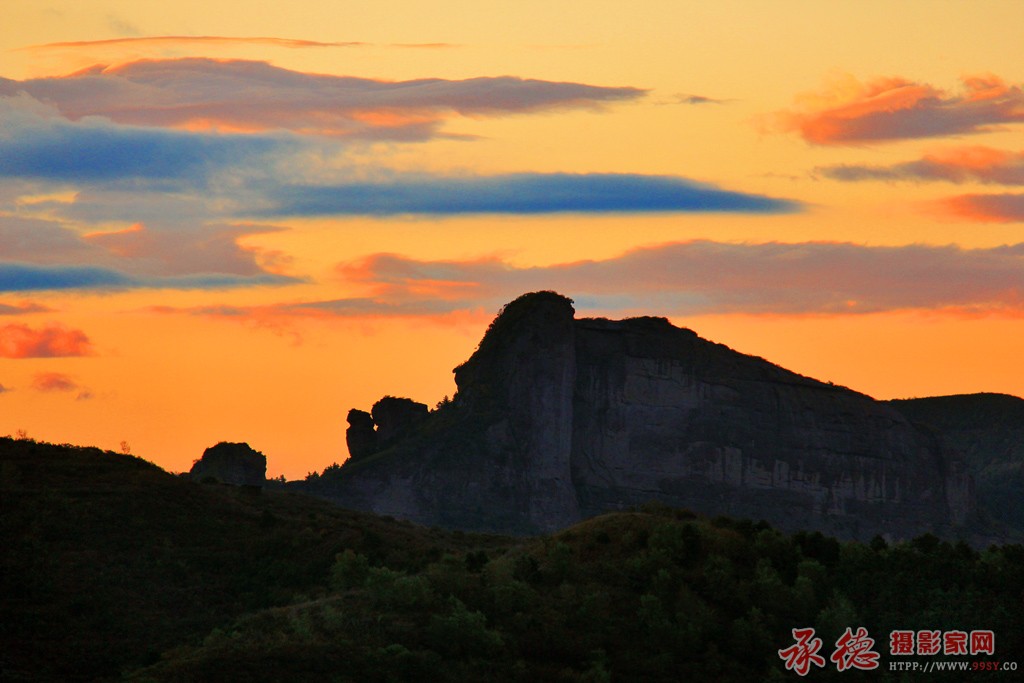 彩霞漂亮 山石形状很有故事 色彩对比呼应的好 感谢分享。