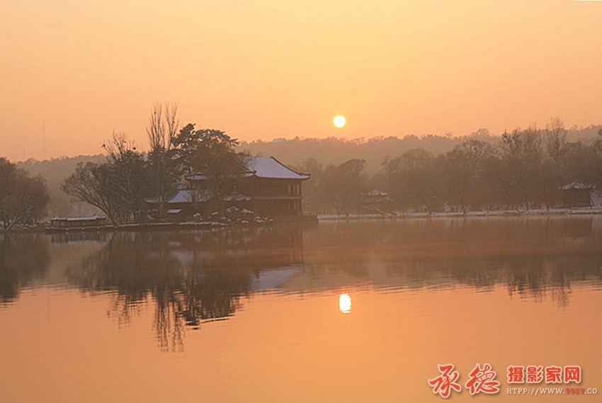 夕阳烟雨楼 色调美 倒影漂亮