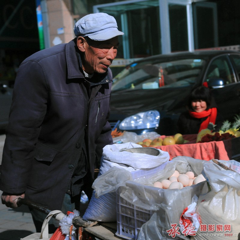 时机把握很好,巧用动静、虚实对比反映街头小贩们的谋生生活,好片!