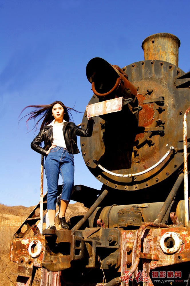 | 构图不错,废弃的火车头,犀利的眼神与主题青春不符合! |