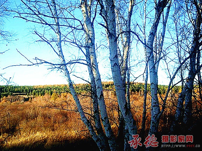 夕阳与白桦
