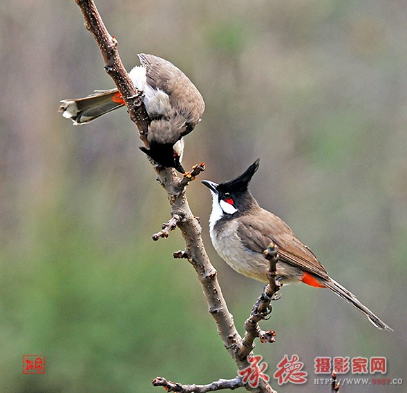 二鸟戏春芽