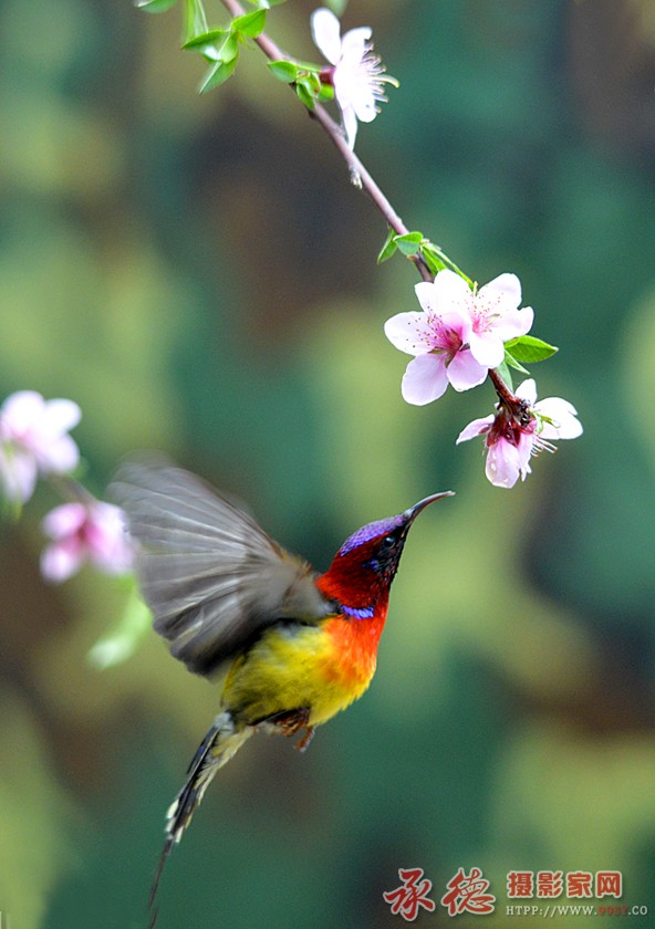 背景干净,花儿漂亮,鸟儿姿态美,眼神有光,精彩画面!