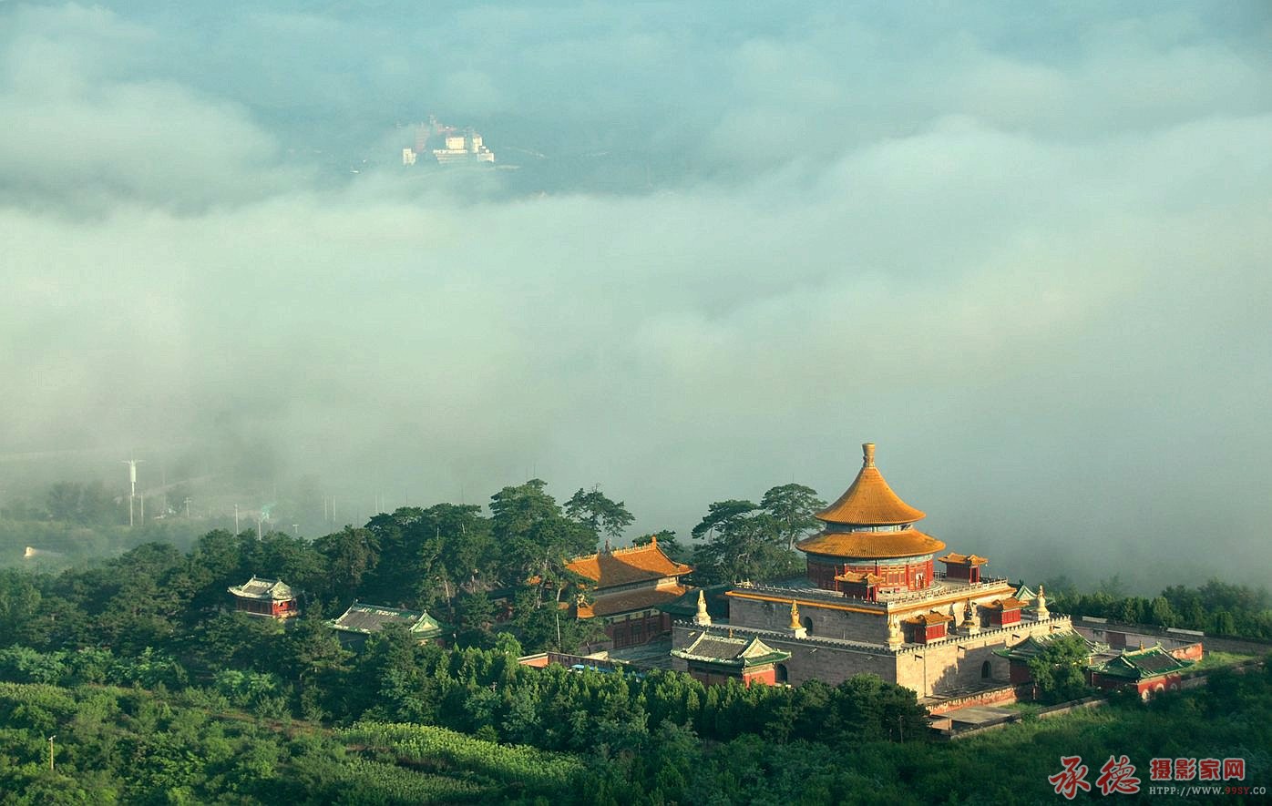 主题鲜明,主体清晰通透,色彩清新淡雅,云雾茫茫如仙境,拍出了外庙之壮观。