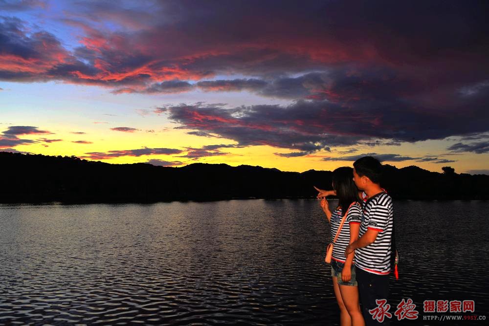 一对情侣看夕阳