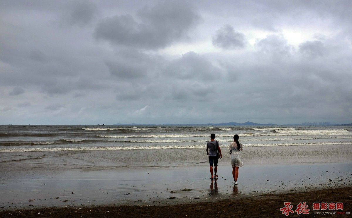 情侣看海听潮,诗的意境。