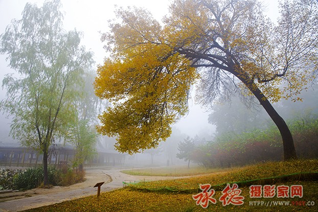 拍摄视角好,构图精细,画面优美,雾中的秋叶分外鲜明,主题突出,色调淡雅优美,好拍摄。