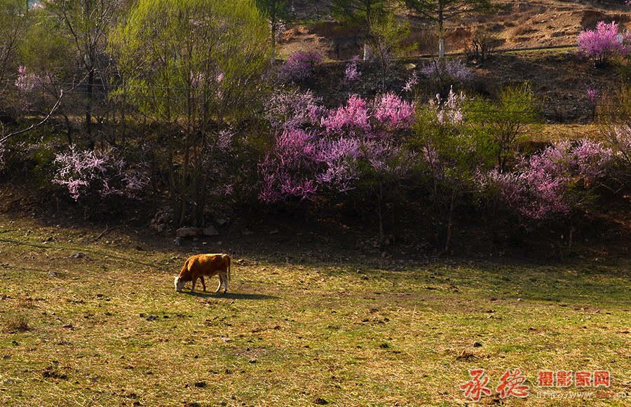 春花烂漫 光影漂亮 小牛点缀精彩 感谢分享。