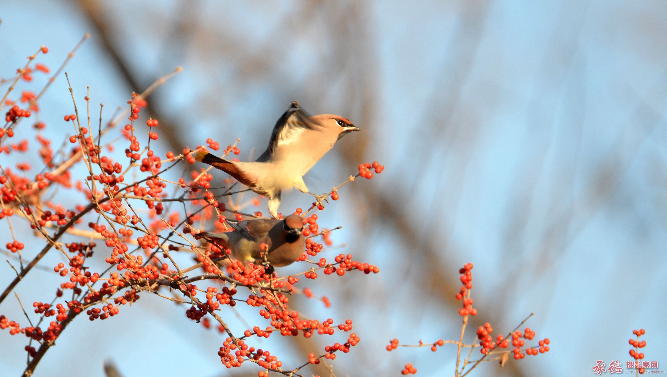 太平鸟食红豆
